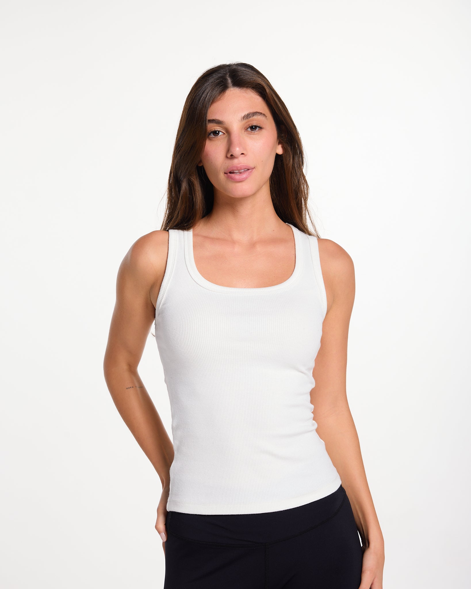 Refined - Ribbed U tank top - white